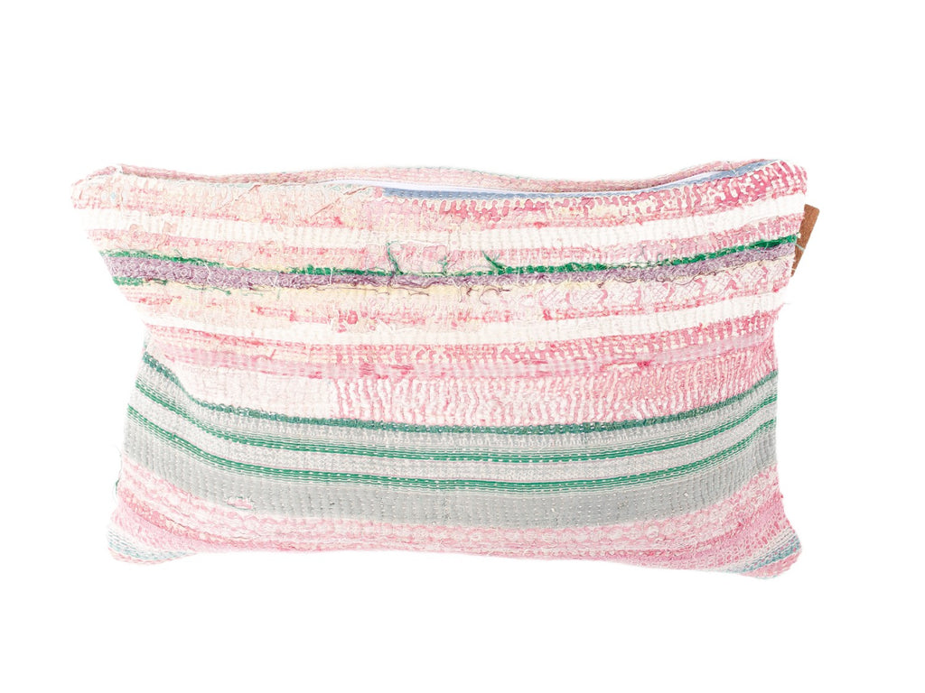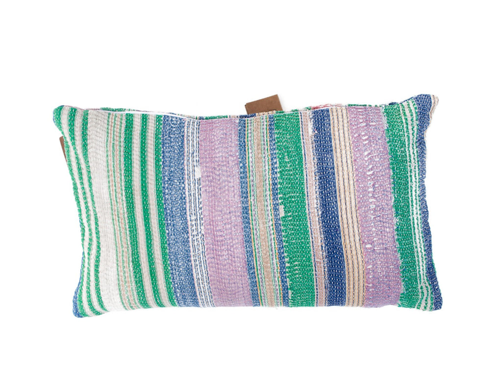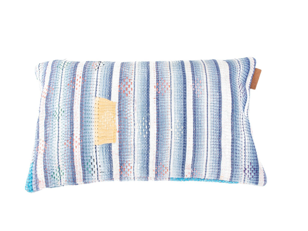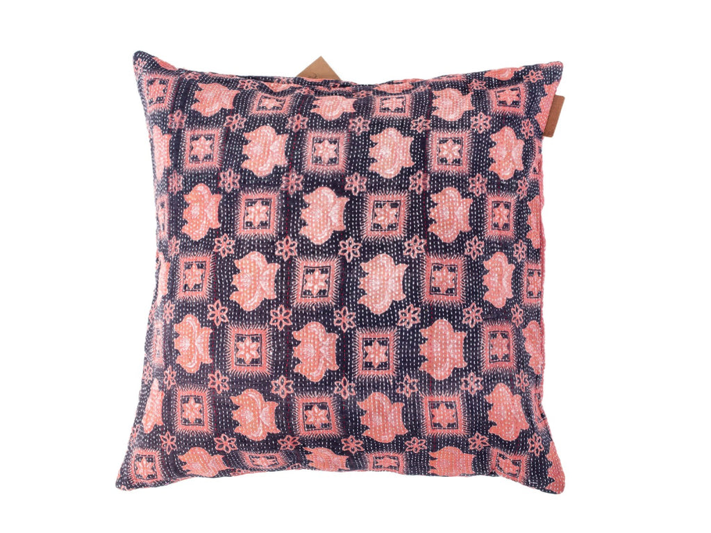 Fine Q are Sari cushions produced from a type of sari that has a different expression than our normal Sari Kantha cushions. They are made of thick recycled cotton sari laid together with several layers in between and with a worn look, where the saris inside help to give the whole pillow a very raw vintage look. They are toned down in colors and patterns and are sewn with smaller and tighter Kantha stitches, which give them an authentic look..