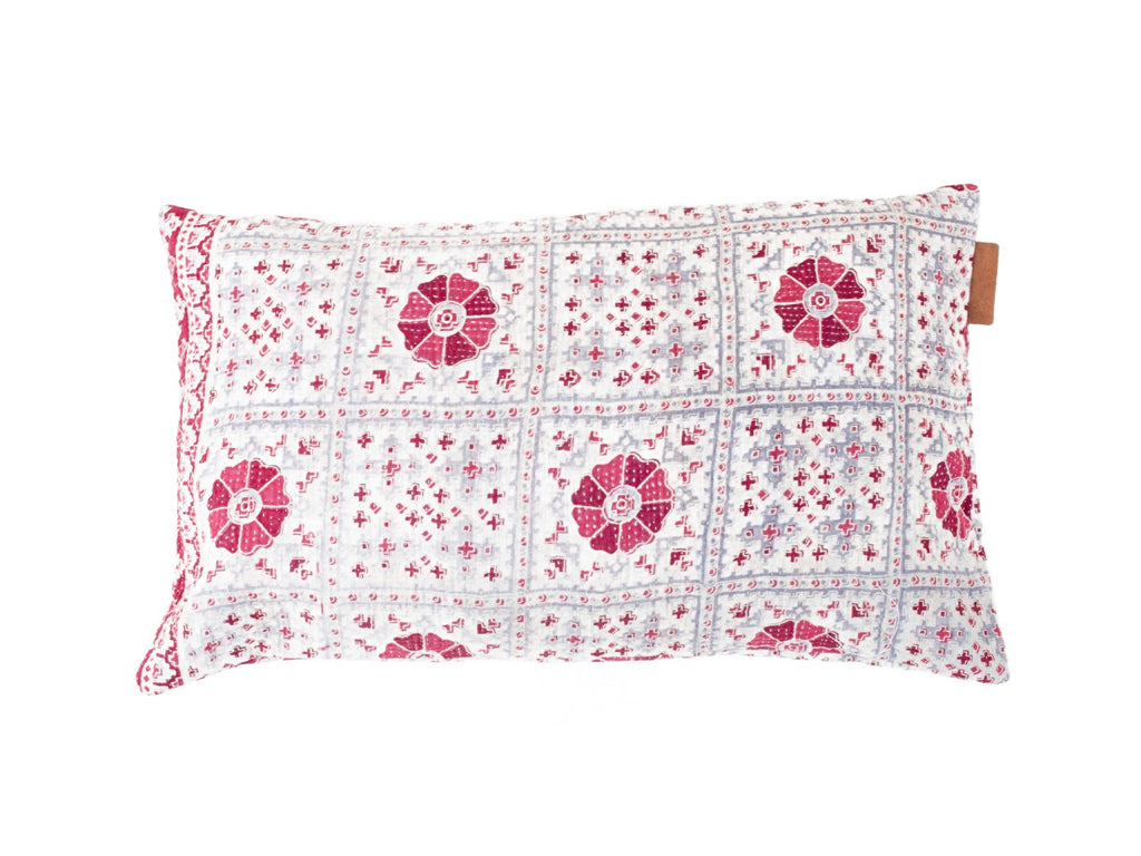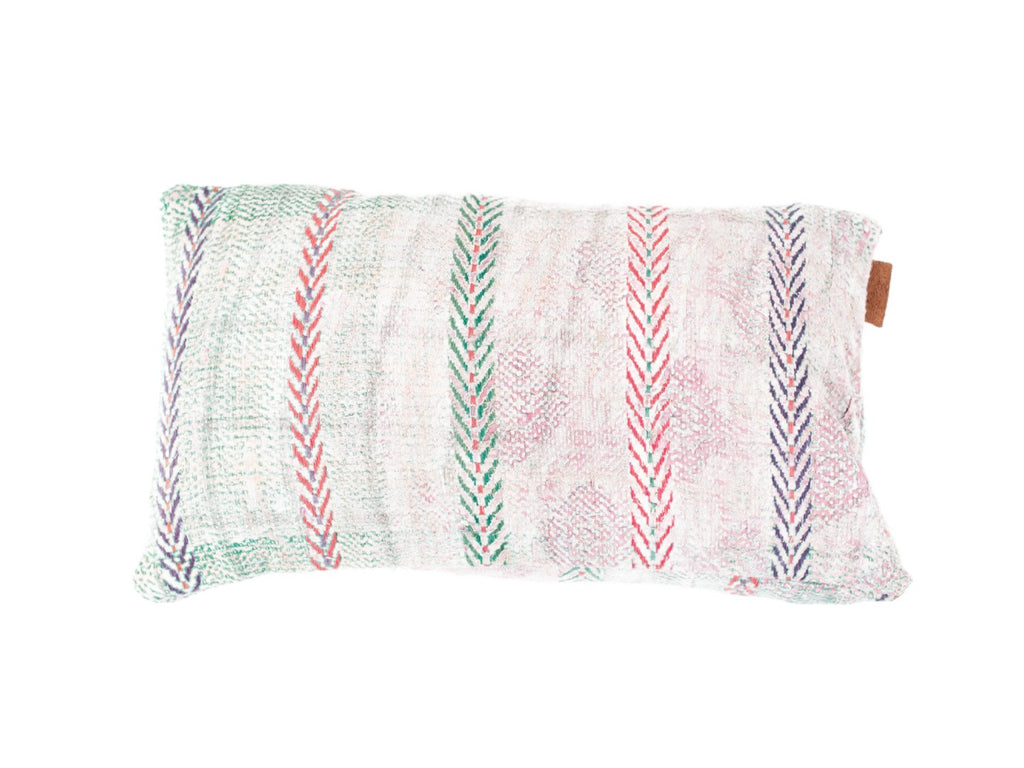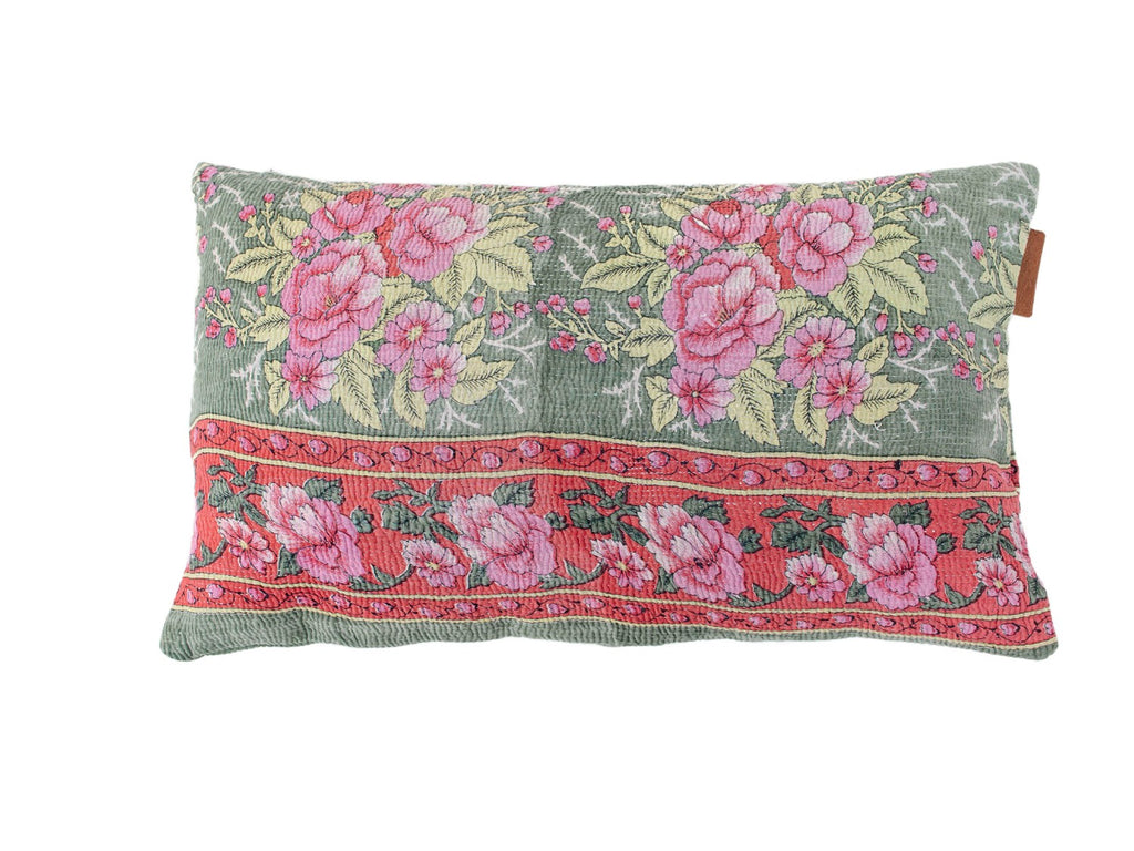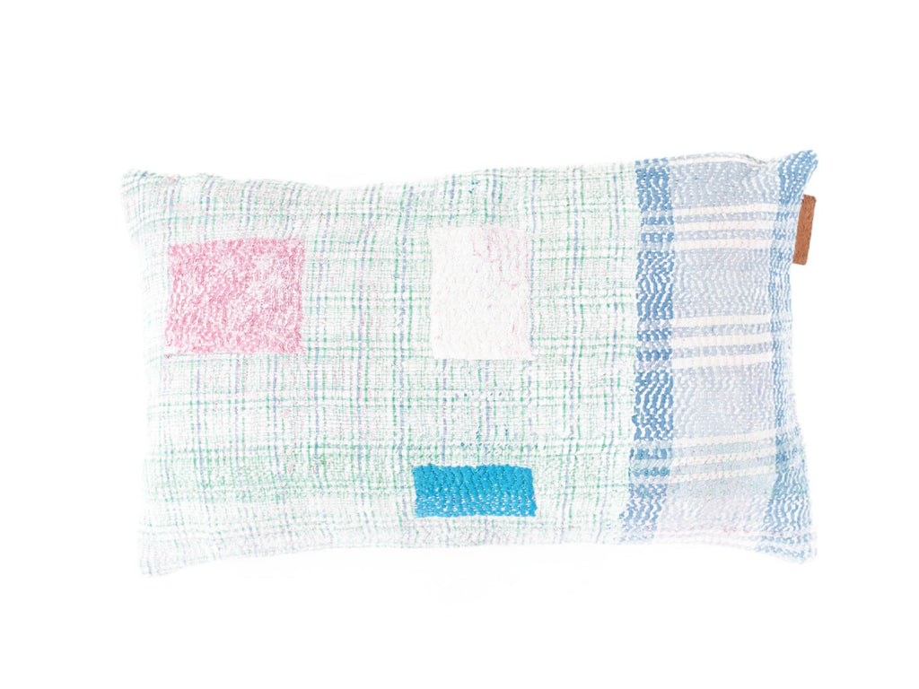 Fine Q are Sari cushions produced from a type of sari that has a different expression than our normal Sari Kantha cushions. They are made of thick recycled cotton sari laid together with several layers in between and with a worn look, where the saris inside help to give the whole pillow a very raw vintage look. They are toned down in colors and patterns and are sewn with smaller and tighter Kantha stitches, which give them an authentic look..