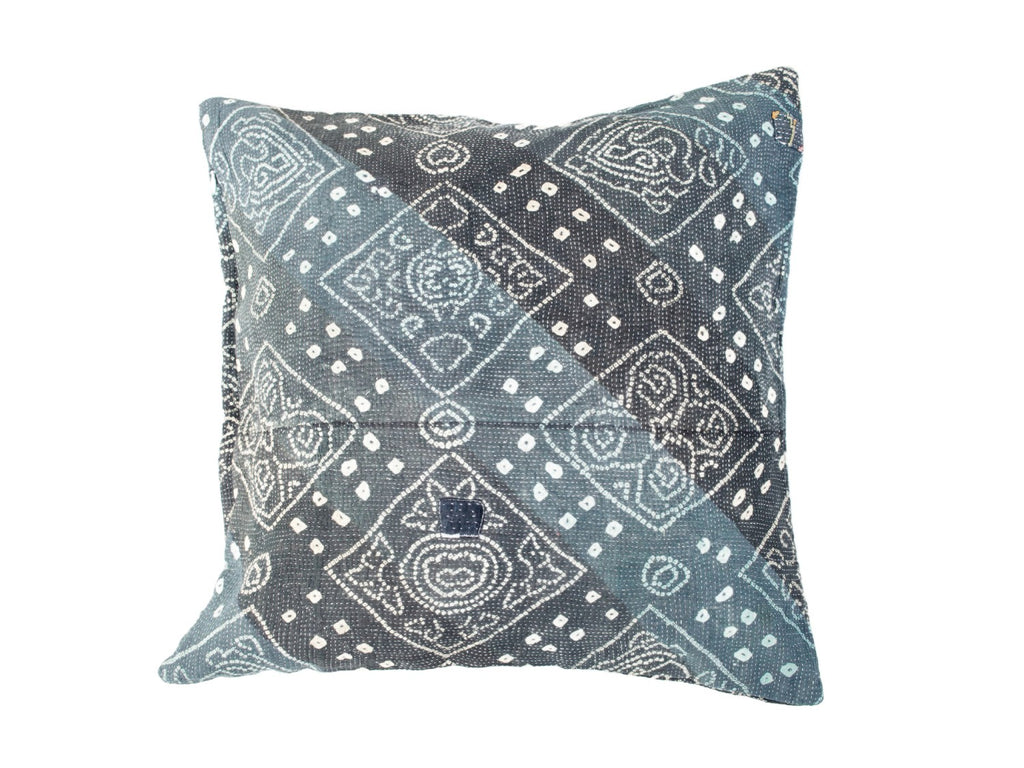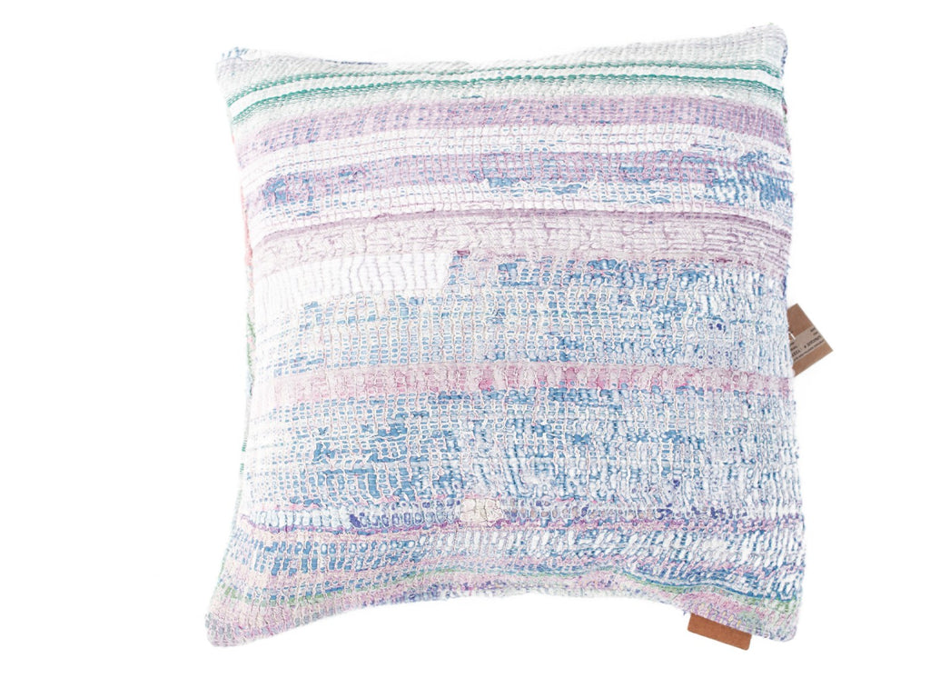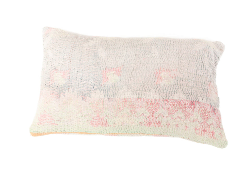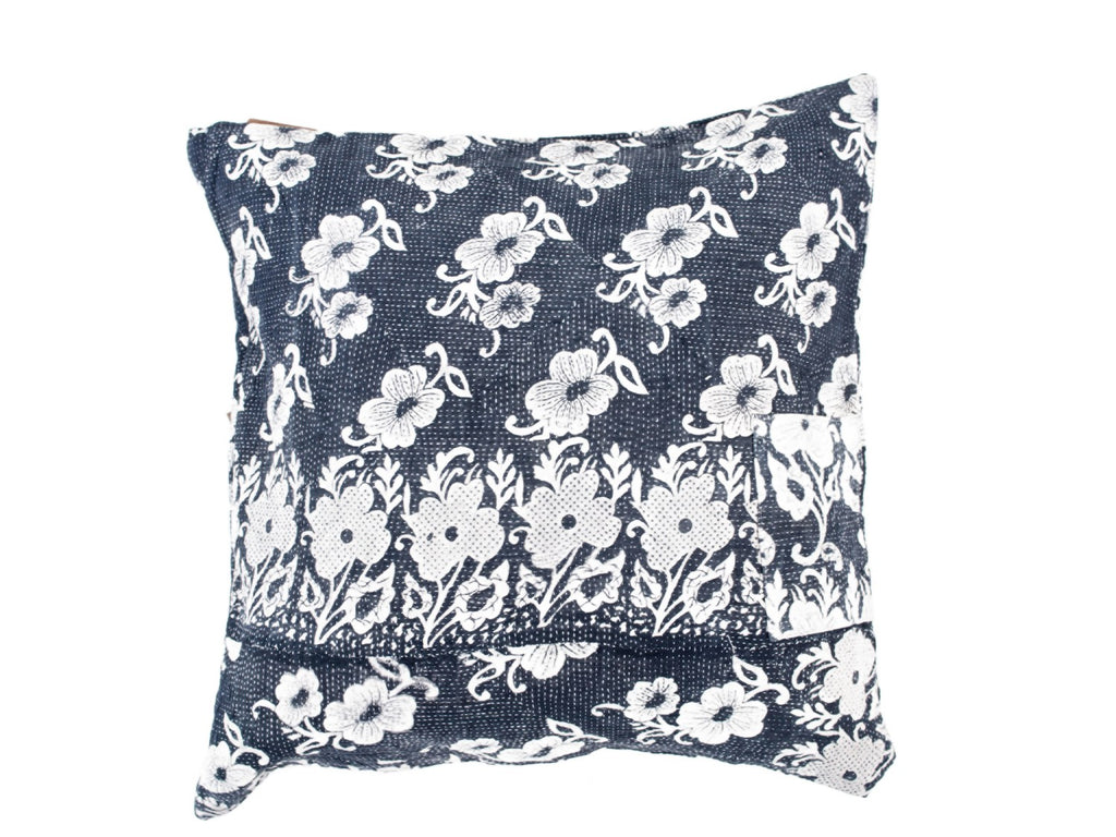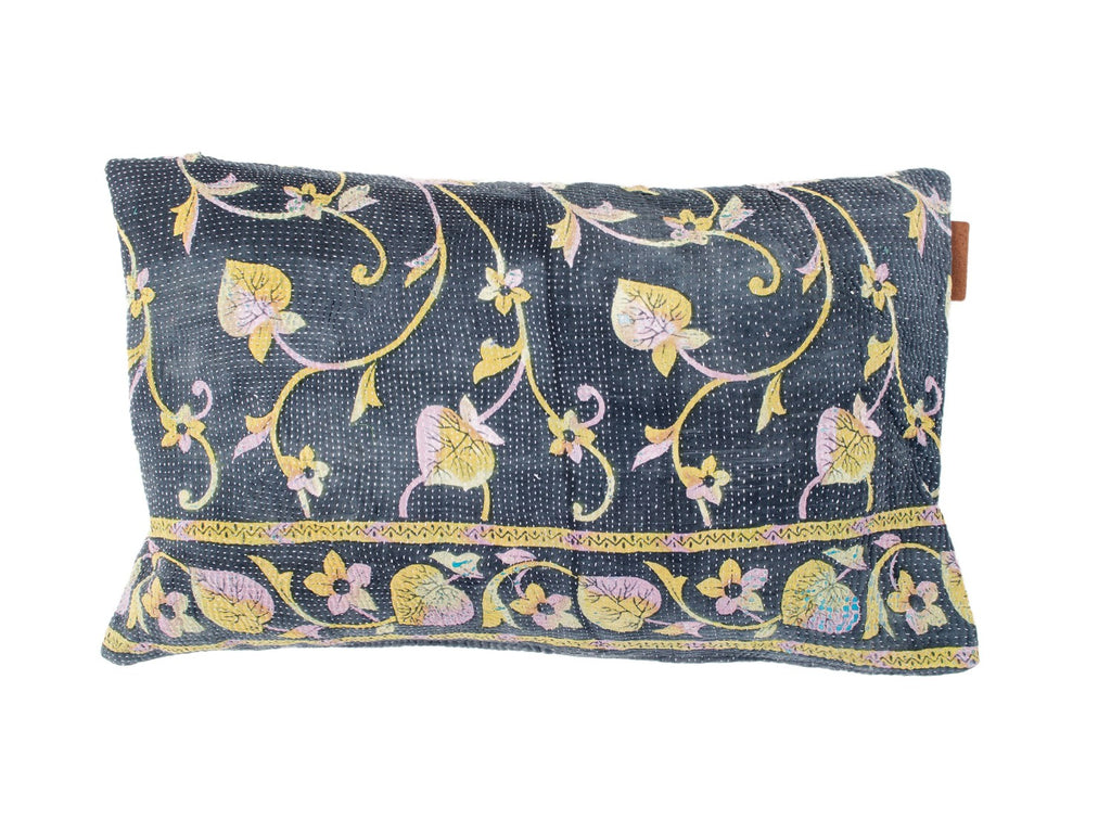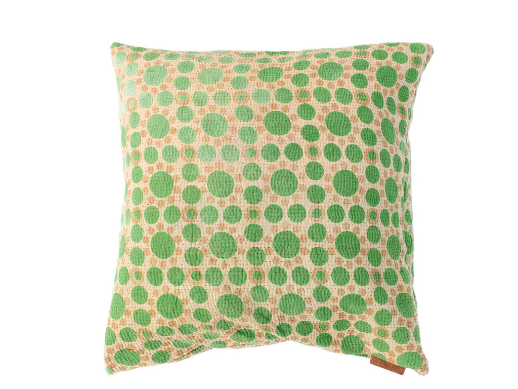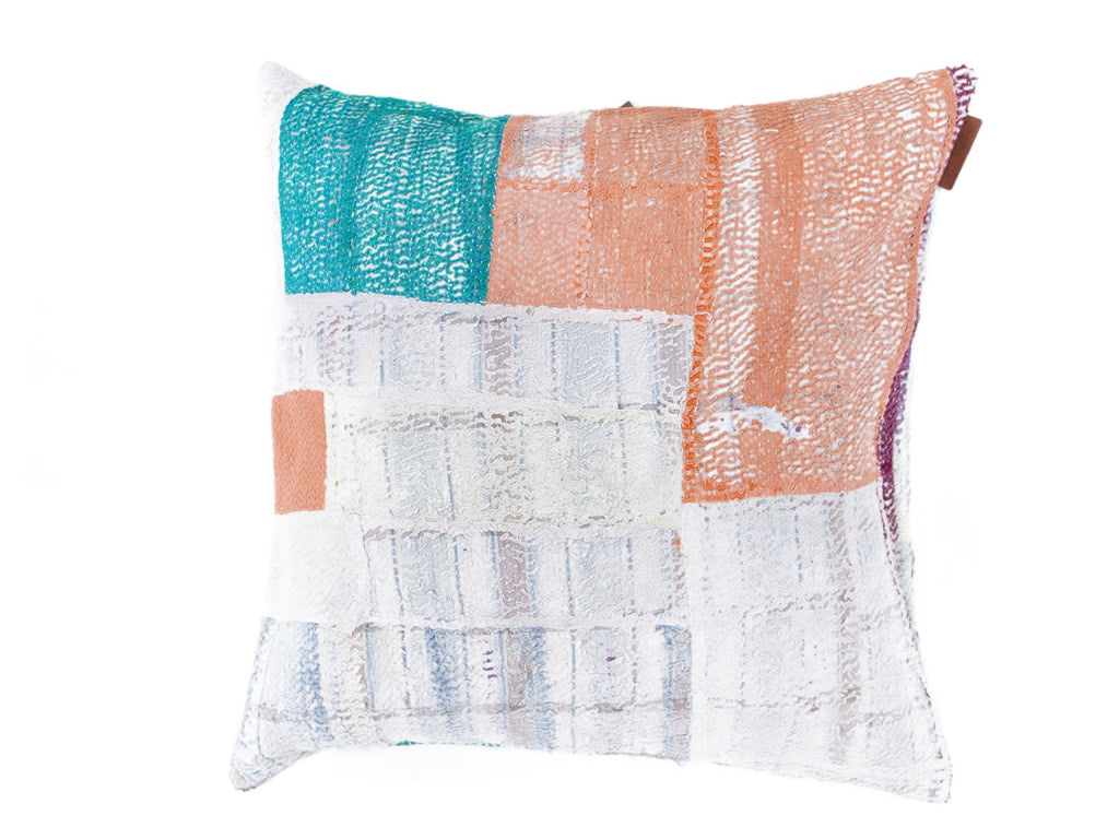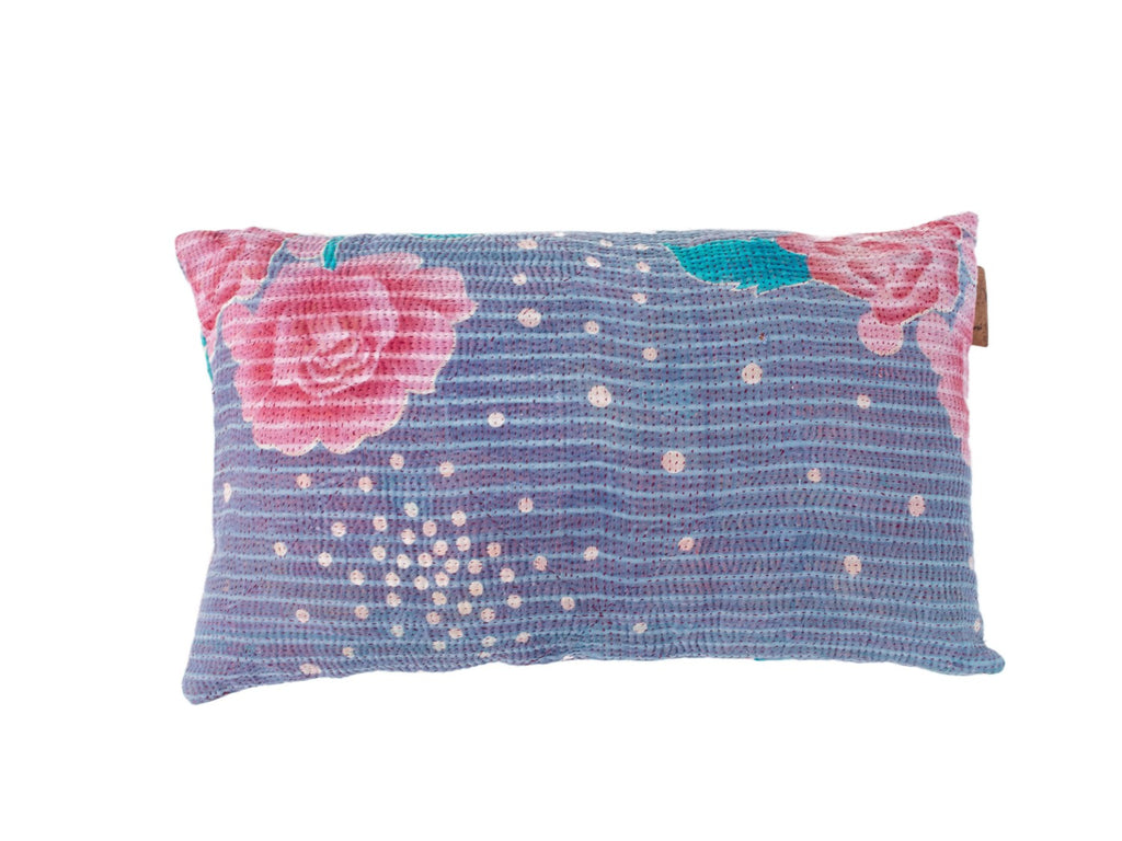 Fine Q are Sari cushions produced from a type of sari that has a different expression than our normal Sari Kantha cushions. They are made of thick recycled cotton sari laid together with several layers in between and with a worn look, where the saris inside help to give the whole pillow a very raw vintage look. They are toned down in colors and patterns and are sewn with smaller and tighter Kantha stitches, which give them an authentic look..